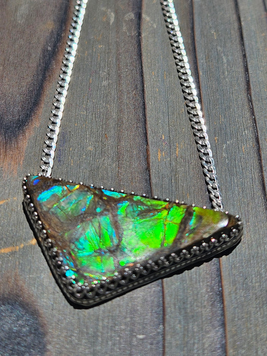 Ammolite and Black Australian Opal Ring, size 8 The ring in person was even better than the photos. It is stunning and unique. I love it!