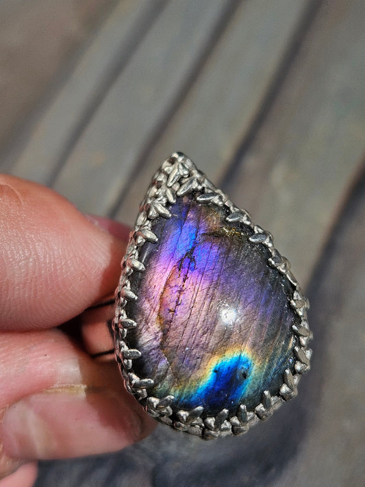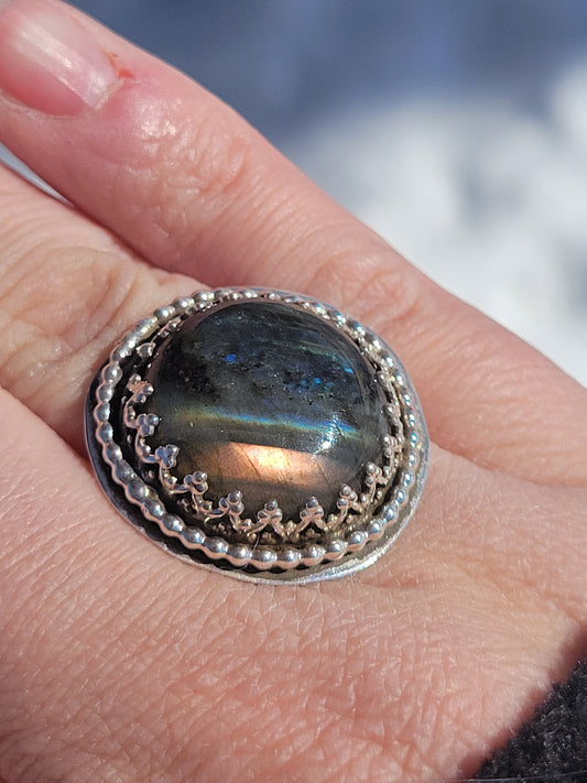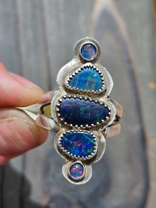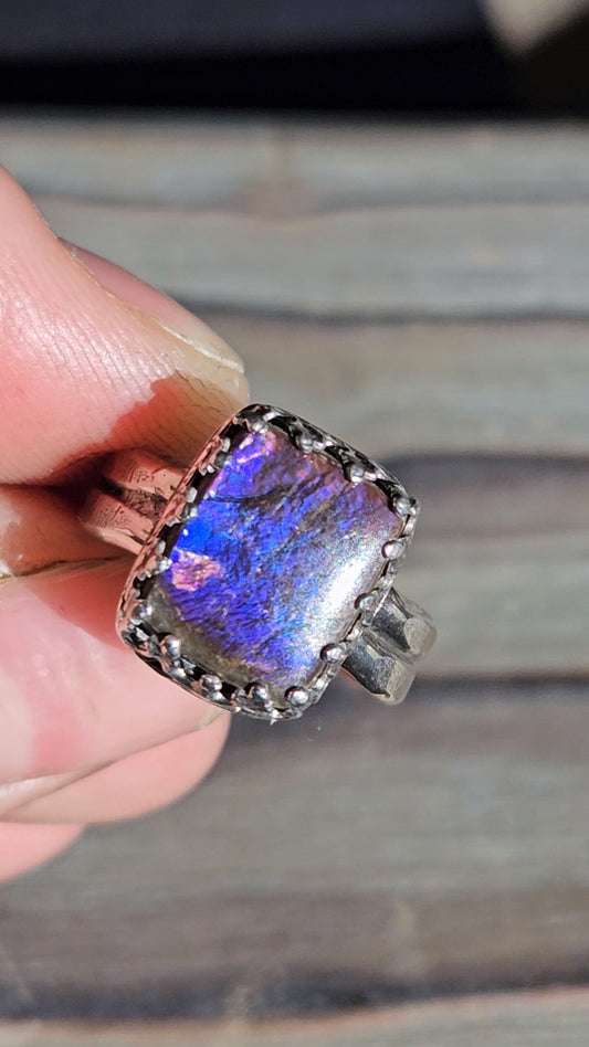 Ammolite and Black Australian Opal Ring, size 8 The ring in person was even better than the photos. It is stunning and unique. I love it!