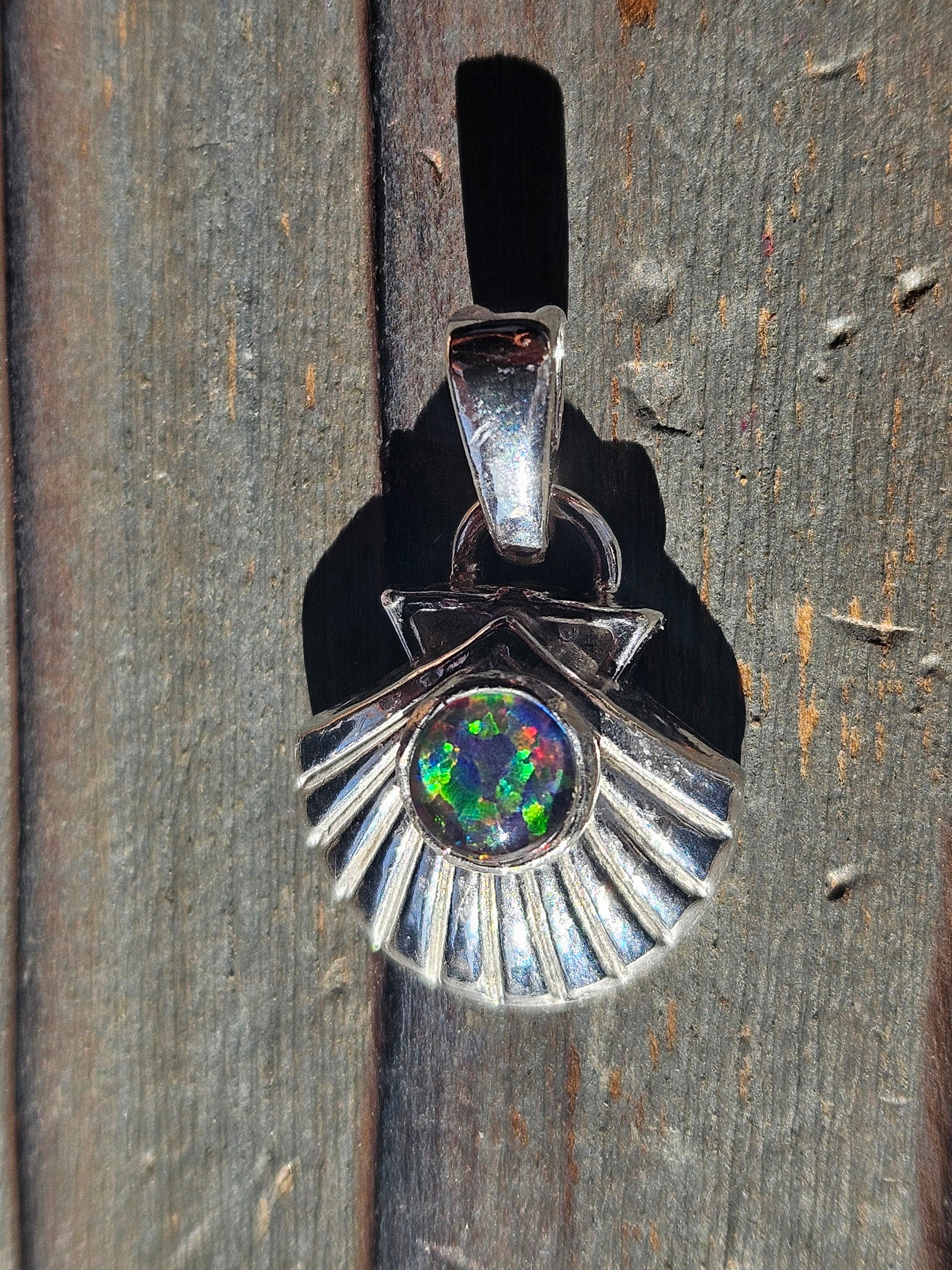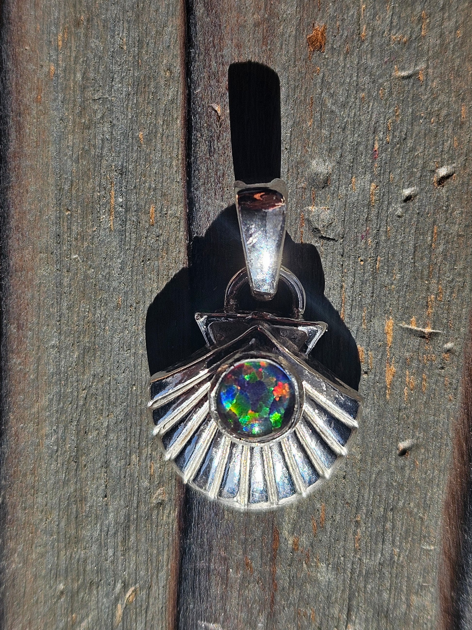 This gorgeous black opal, has every color and then some! On a sterling silver seashell, to glam up anyday!