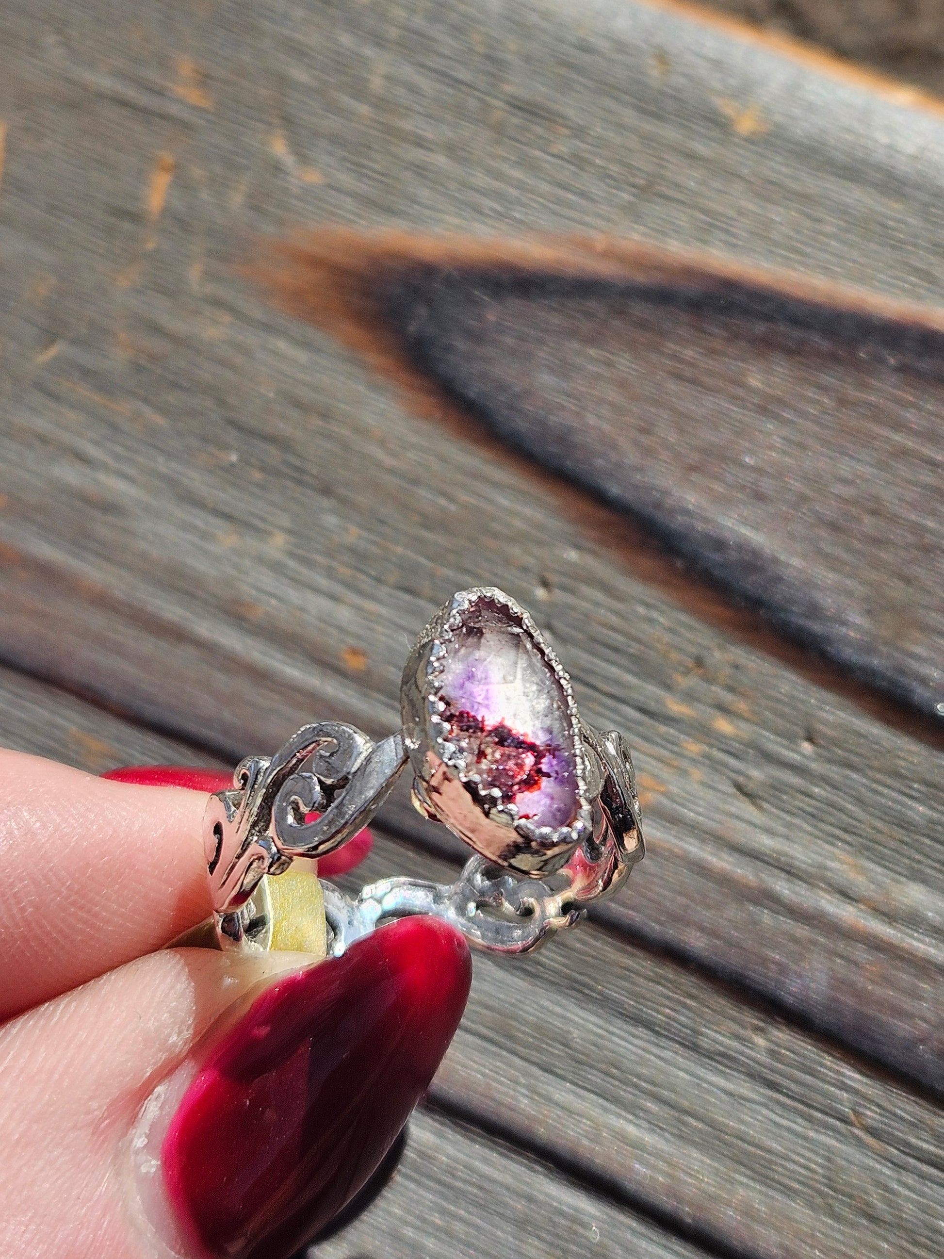 This gemmy Super 7 ring has an art deco spiral band for a little extra sparkle. Made of sterling silver and love. I think everyone needs a Super 7!!