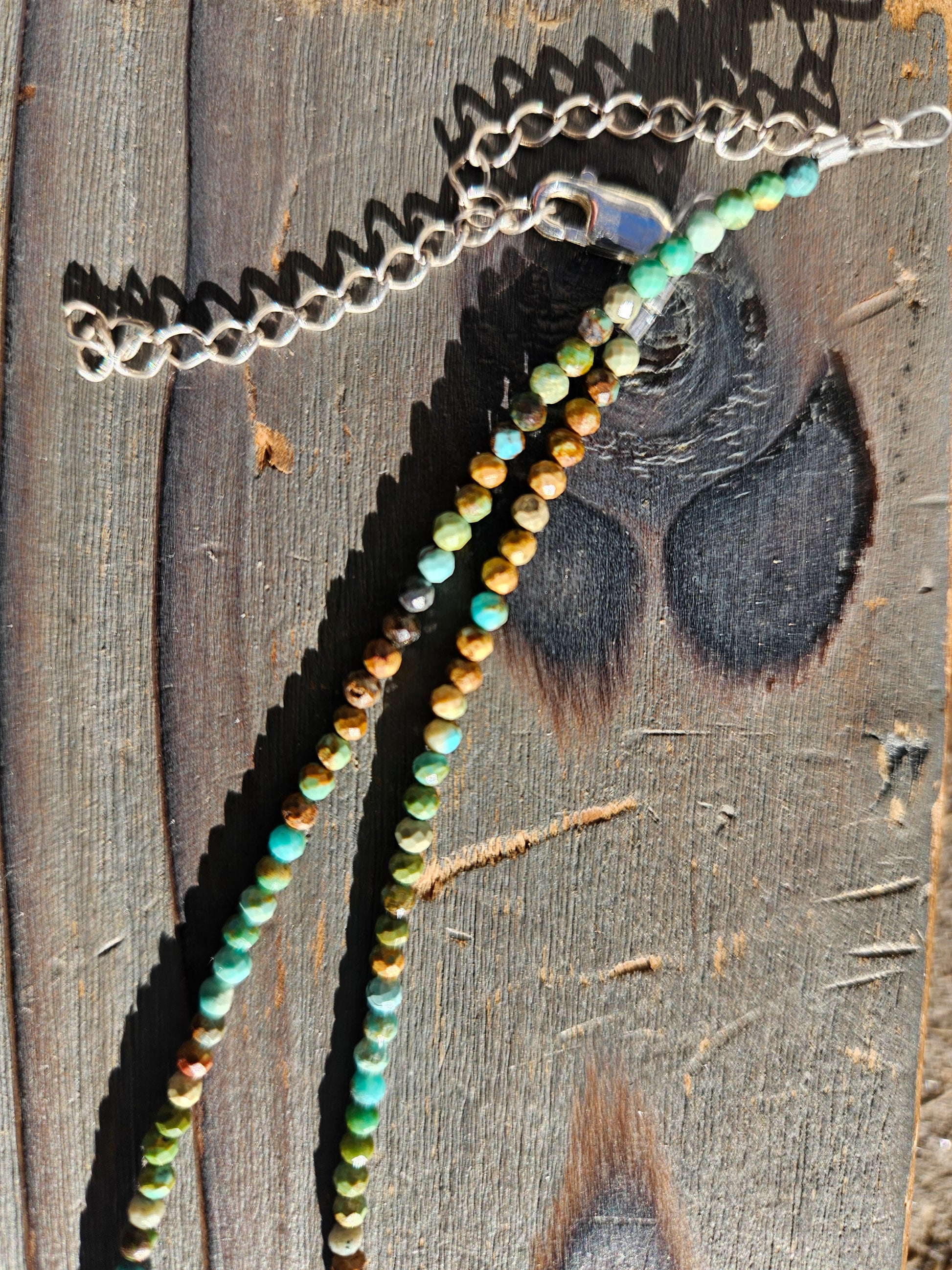 This gorgeous strand of turquoise marries the perfect combination of blues, greens and browns for the Earthy vibe! With sterling silver findings, this baby is 19in with an adjustable extension chain